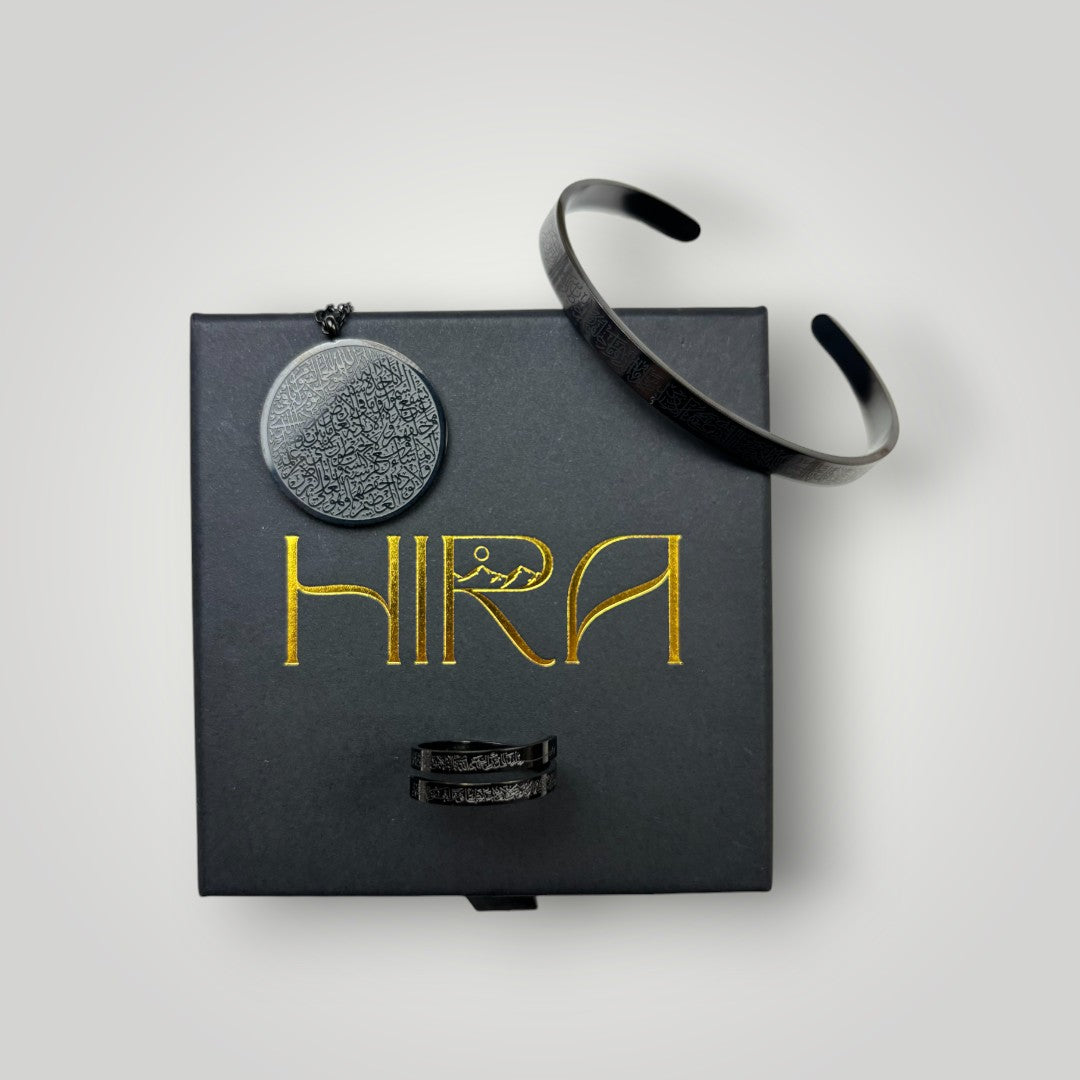 آية الكرسي مجموعة من 3 | سوار | خاتم | قلادة - أسود