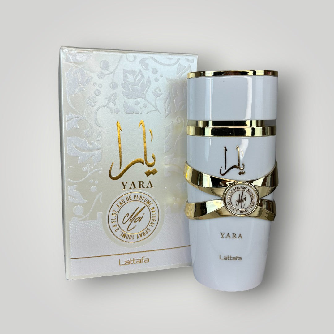 يارا موي من لطافة هو عطر نسائي جديد، متوفر منذ عام 2022. فهو يجمع بين النفحات العليا من الياسمين والخوخ، والنفحات الوسطى من الكراميل والعنبر، ونفحات القاعدة من الباتشولي وخشب الصندل.
