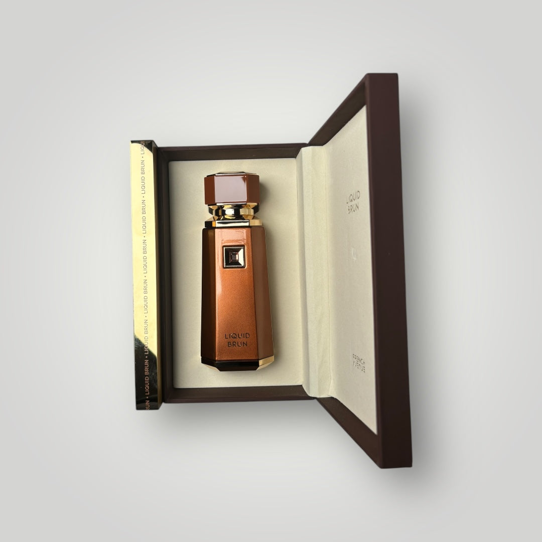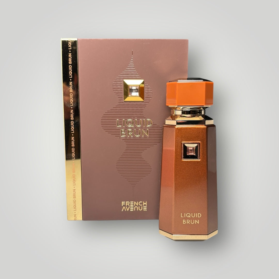 Tauche ein in die Welt von Liquid Brun von French Avenue, einem betörenden Duft aus der Amber-Vanille-Familie. Diese elegante Komposition eröffnet mit einer verführerischen Mischung aus spritzigem Zitrus und würzigem Zimt, die sofort ein Gefühl von Lebendigkeit und wohltuender Wärme weckt. Im Herzen entfaltet sich die süße Vanille, die sich harmonisch mit feinen, holzigen Nuancen verbindet und eine sinnliche, beruhigende Atmosphäre schafft. Der Duft klingt sanft aus mit einem zarten Moschus-Akzent, der von einer subtilen, nussigen Süße umspielt wird und dem Erlebnis eine raffinierte Vollendung verleiht.