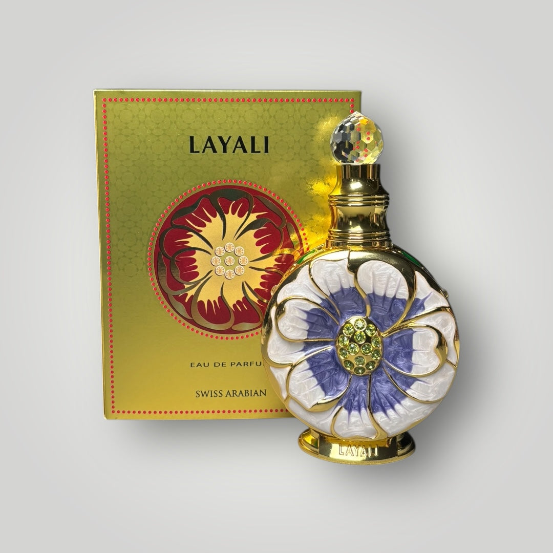 Layali verkörpert die Frau, die mit ihrer verführerischen Ausstrahlung alle in ihren Bann zieht. Dieser intensive, fruchtig-blumige Duft entfaltet sich mit saftiger Pflaume und zarten Orangenblüten, die von grünen Frühlingsnoten begleitet werden. Schwarze Johannisbeeren verschmelzen mit einem floralen Bouquet aus Rosen und cremigem Jasmin. Das Herz des Parfums wird von kostbarem Oud erleuchtet, das mit Amber harmoniert und dem Duft eine warme, sinnliche Tiefe verleiht. Layali ist der perfekte Begleiter für kühlere Tage, wenn Schönheit pure Intensität bedeutet.